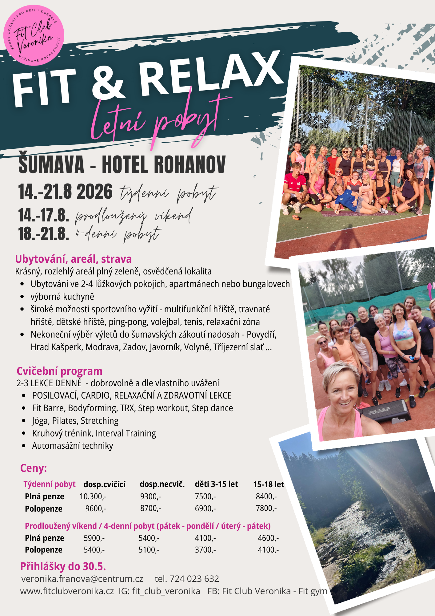 FIT BARRE, JÓGA, INTERVAL TRAINING, PILATES, DANCE, BODYFORMING, STRETCHING... přihláška zde |